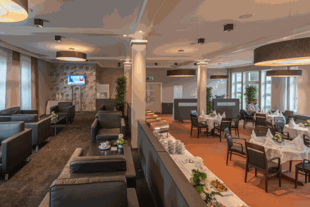 明亮、簡潔、現(xiàn)代、時尚 —— 總結(jié)了"五大洲餐廳"的特點, 該餐廳可以接待425位客人, 另外還有100個露臺座位可供使用。