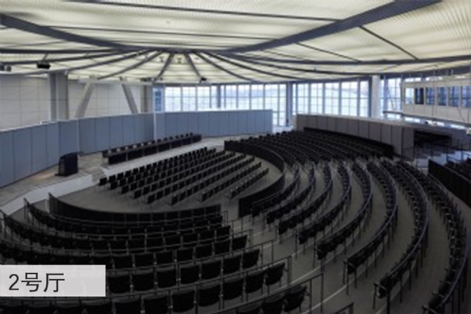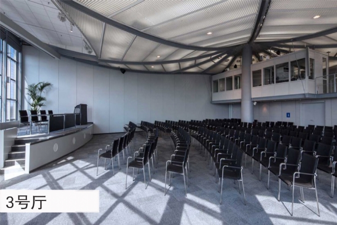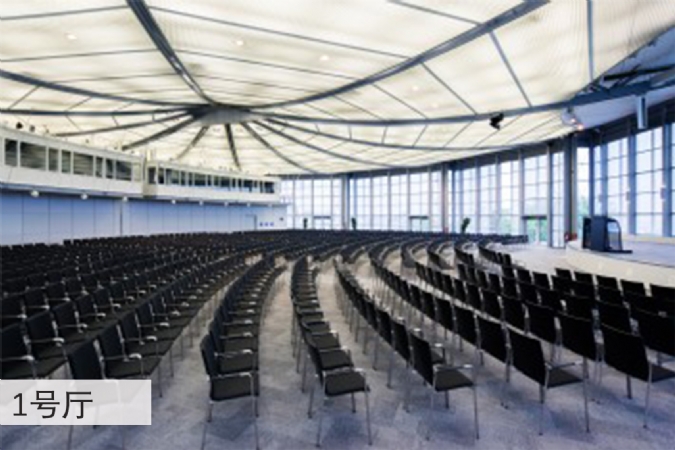 1號廳 擁有1,260平方米(約13,600平方英尺)的空間,可容納多達1,140名觀眾,是一個高度靈活的多功能禮堂,非常適合舉辦大型活動。展廳中可根據需要調暗的落地窗,先進的會議設備和兩個獨立的入口是1號廳的主要優點。 |